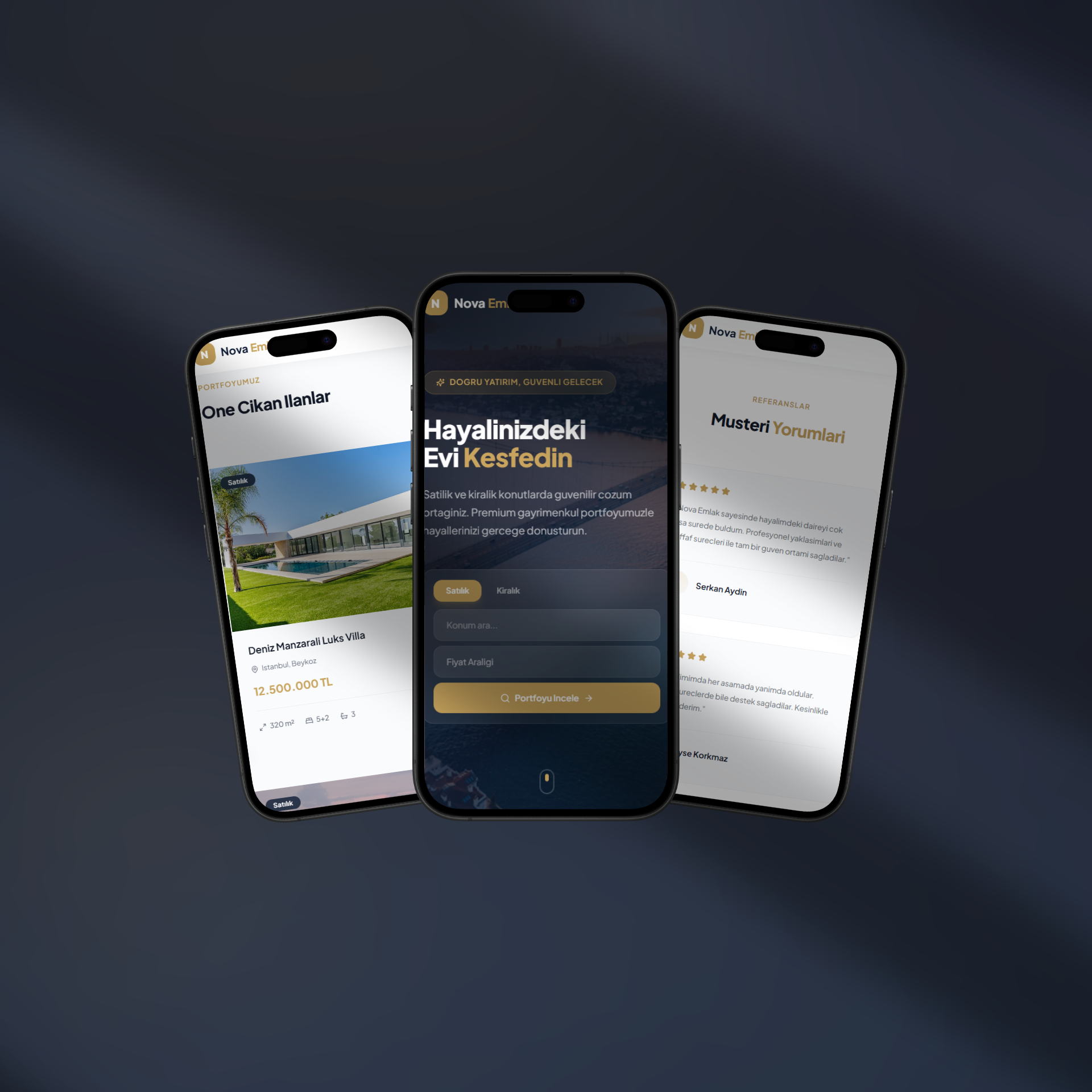 Nova Emlak, emlak ilanlarının modern bir vitrin yapısında sunulmasını ve yönetim paneli üzerinden kolayca yönetilmesini göstermek için kurgulanmış konsept bir demo projedir.